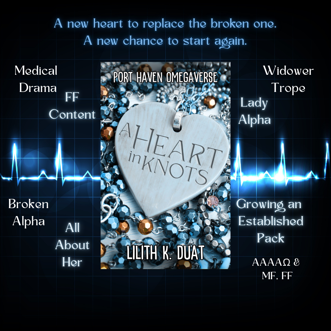 A Heart in Knots is a medium burn why choose story about an omega with a desperate need for a heart transplant, and how that affects her, her pack, and the alpha that her donor heart left behind.